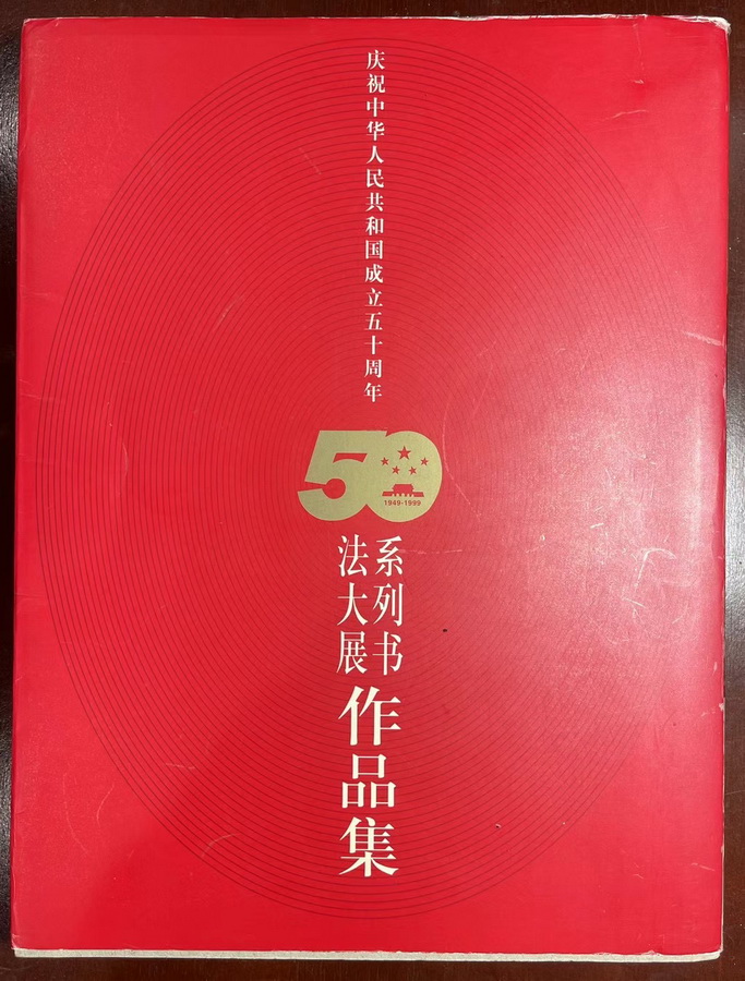 今天收拾东西,发现了20多年前的一本书,是当年参加建国50周年书法展的作品集。这个展览是1999年由中国文联和中国书法家协会在北京民族文化宫联合举办的。为显重要,把许多新中国重要人物的作品都拿出来了,我因为身在海外,得以滥竽充数。