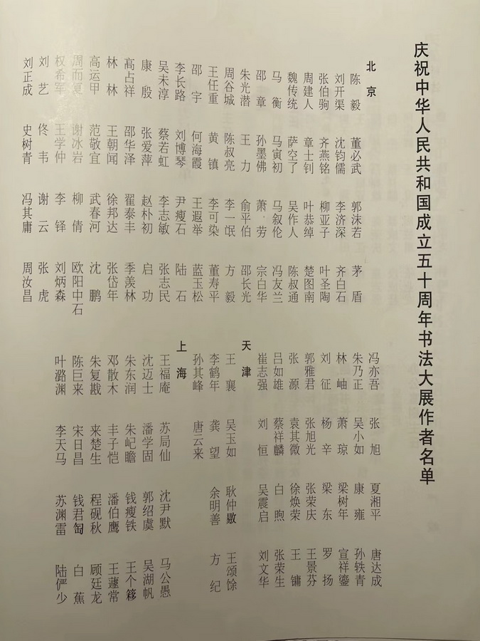 参加建国50周年书法大展