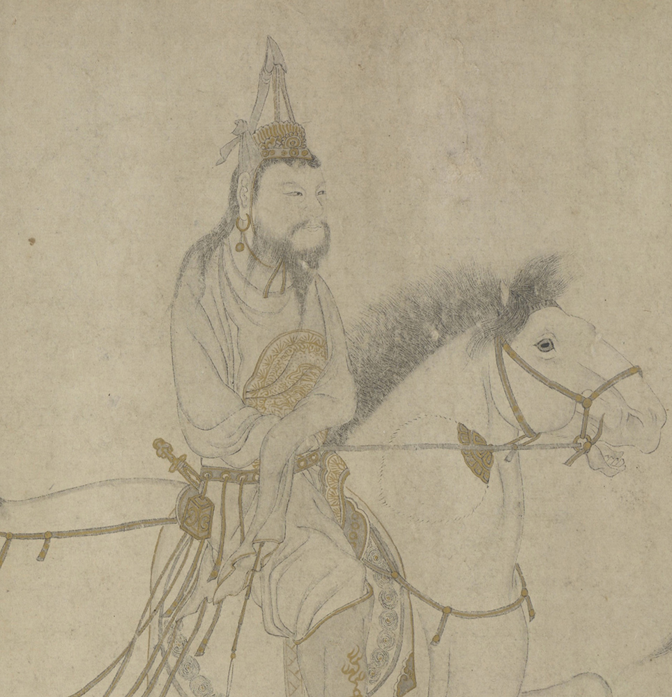 在我做义务馆员的美国国立亚洲艺术博物馆(Freer Galley of Art),收藏有一幅是署名赵孟頫孙子,元末画家赵麟的【番骑图】,工笔线描,略涂金彩(应该是没画完,刚开始上色),人马画的都很生动,当然很有赵家风范。见(1)全图视频和图(2),(3)局部细节。
