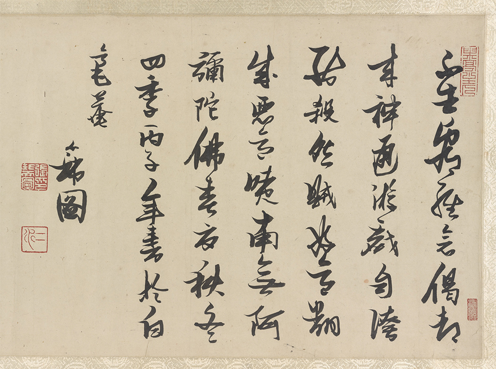 在我以前写的文章【美国弗里尔博物馆的国宝与中国文物大盗】里,我提到,文物大盗卢芹斋1957去世后,他多年的同事 Frank Caro 接下了古董店,保留了卢芹斋公司名字继续从事中国文物生意。1960年,美国海关扣押了Frank Caro 和香港收藏家陈仁涛共同引入的88件文物,理由是违反了当时对共产中国的禁运法案。后来美国政府和 Frank Caro 的后代达成了协议,这批文物在美国海关仓库呆了近20年后,于1979年底被送给了佛利尔博物馆,这幅画就是其中的一幅。猜测清末的人因为郑文林在画上署名“颠仙”,所以请人抄录了明史中颠仙的故事,装裱在卷后,是否有意让人混淆不得而知,我们知道的是,在欣赏这幅画的同时,更多的人知道了世界上还有皇帝给疯子写传记的这种事儿。