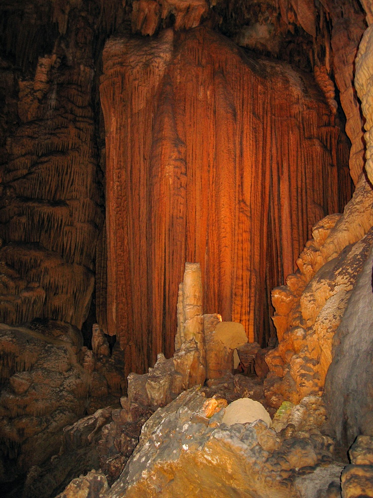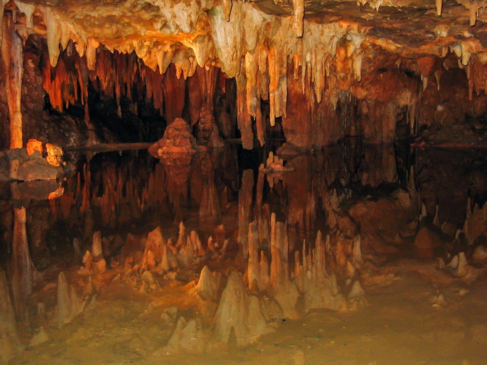 卢瑞溶洞(Luray Caverns)位于美国弗吉尼亚州的仙纳度谷(Shenandoah Valley),是美东地区最大的钟乳石溶洞,于4亿年前形成,发现于1878年。洞穴内满布数万年至数十万年甚至百万年才能形成的各类钟乳石。在碳酸盐岩沉层分布区经长期风化剥蚀和地表水的切割溶蚀,日积月累形成了典型的岩溶地貌形态。沉淀物由上而下结成为冰柱状垂挂在天花板的称为钟乳石,像从地面冒出头圆锥状如竹笋般的称为石笋,两者不断生长到上下两端相接后逐渐成为石柱。更有千姿百态的石花、石枝、石塔、石盾、石瀑布等钟乳石造型。