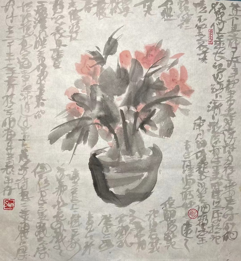 一会儿土,一会儿洋;有时练练传统,有时试试现代。写字刻章之余,无师自乐。