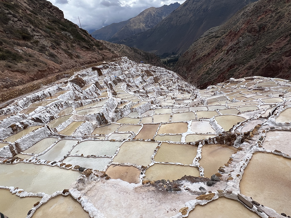 马拉斯盐田(Maras )从印加时期就已经存在,尽管上山时拥挤又陡峭的盘山汽车行程让人有些担忧和眩晕,但到达目的地看见绵延不绝遍布了整个山头的盐田时人一下子就心旷神怡了。在这总共有3000多个5平方公尺大小的一个挨着一个的大盐池,自古至今世代相传,人们以同样的天然方法制盐,这一方面让人觉得有些匪夷所思 ,另一方面又觉得挺奇妙可爱。