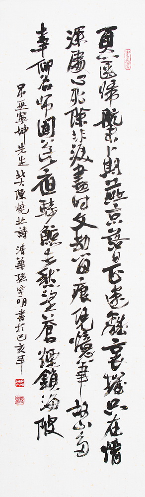 行书 七律·悼巫宁坤 Running Script Poetry 把鼠标放图片上可局部放大 mouse over to zoom 七律·悼巫宁坤) 负箧归航未卜期,燕京落日正迷离。 哀摧只在情深处,心死除非泪尽时。 文劫留痕凭忆笔,故山多幸仰名师。 闻公此夜骑鲸去,愁望苍烟锁海陂。